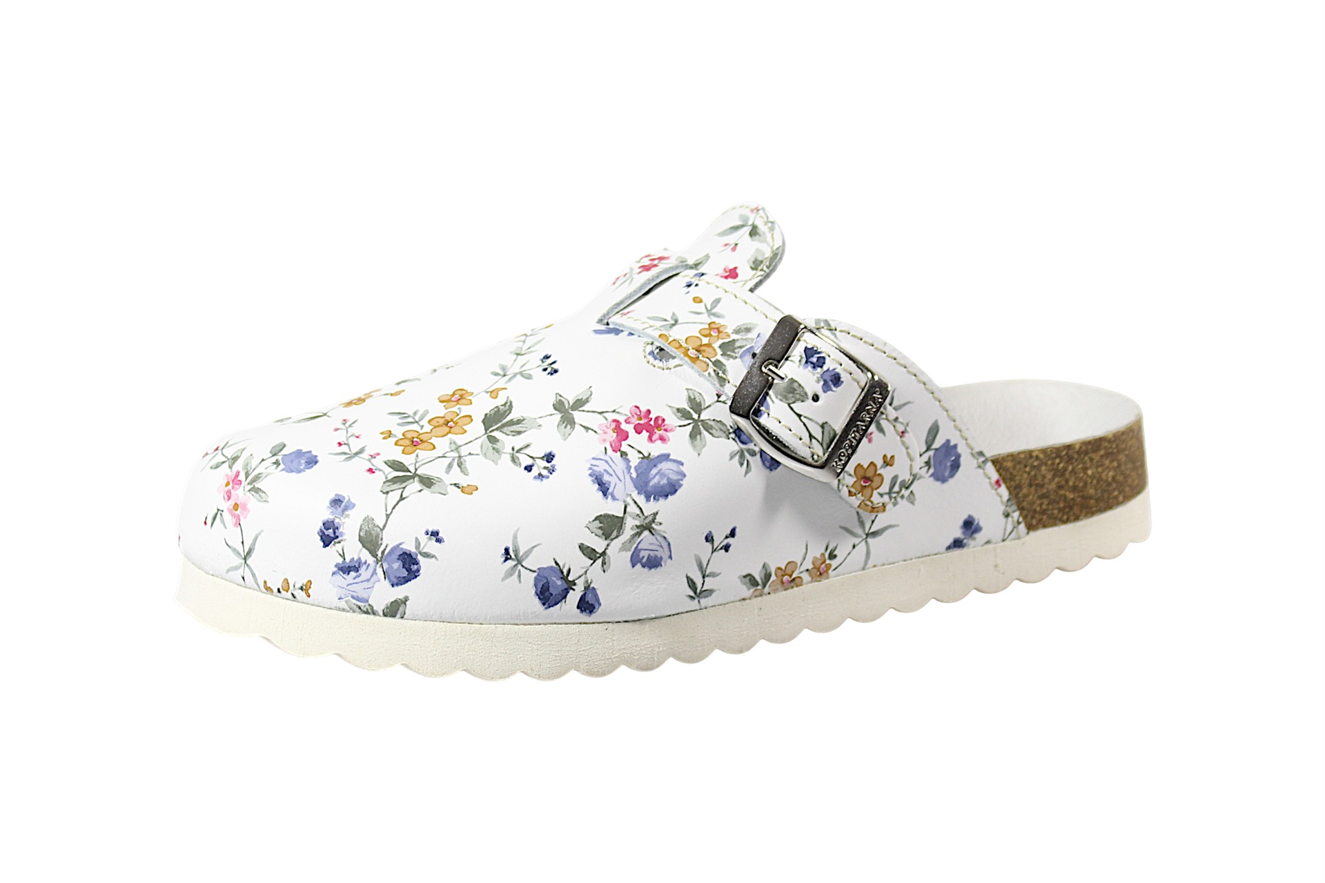 Kožna obuća udobne širine. Podplat iz lahke ter mehke plute,oblečene z usnjem.